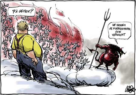 Kürzester Islam-Witz? (Dänische Mohamed-Cartoons, Anstoß zur weltweiten gewaltsamen Entrüstung islamischer "Friedensfreunde" Zeichnung: Kurt WESWTERGAARD in Jyllands Posten Dänemark, 2005-09-30)